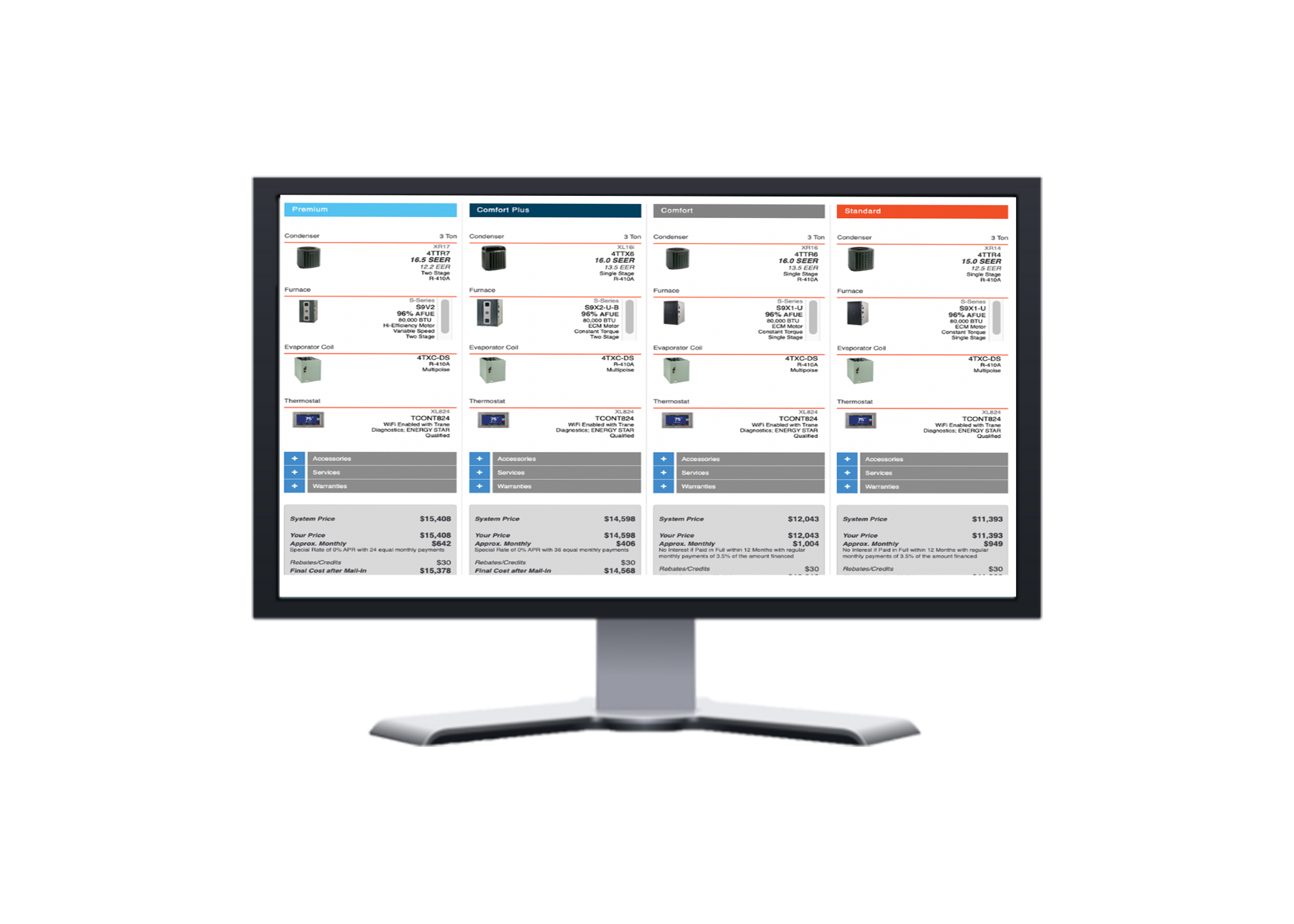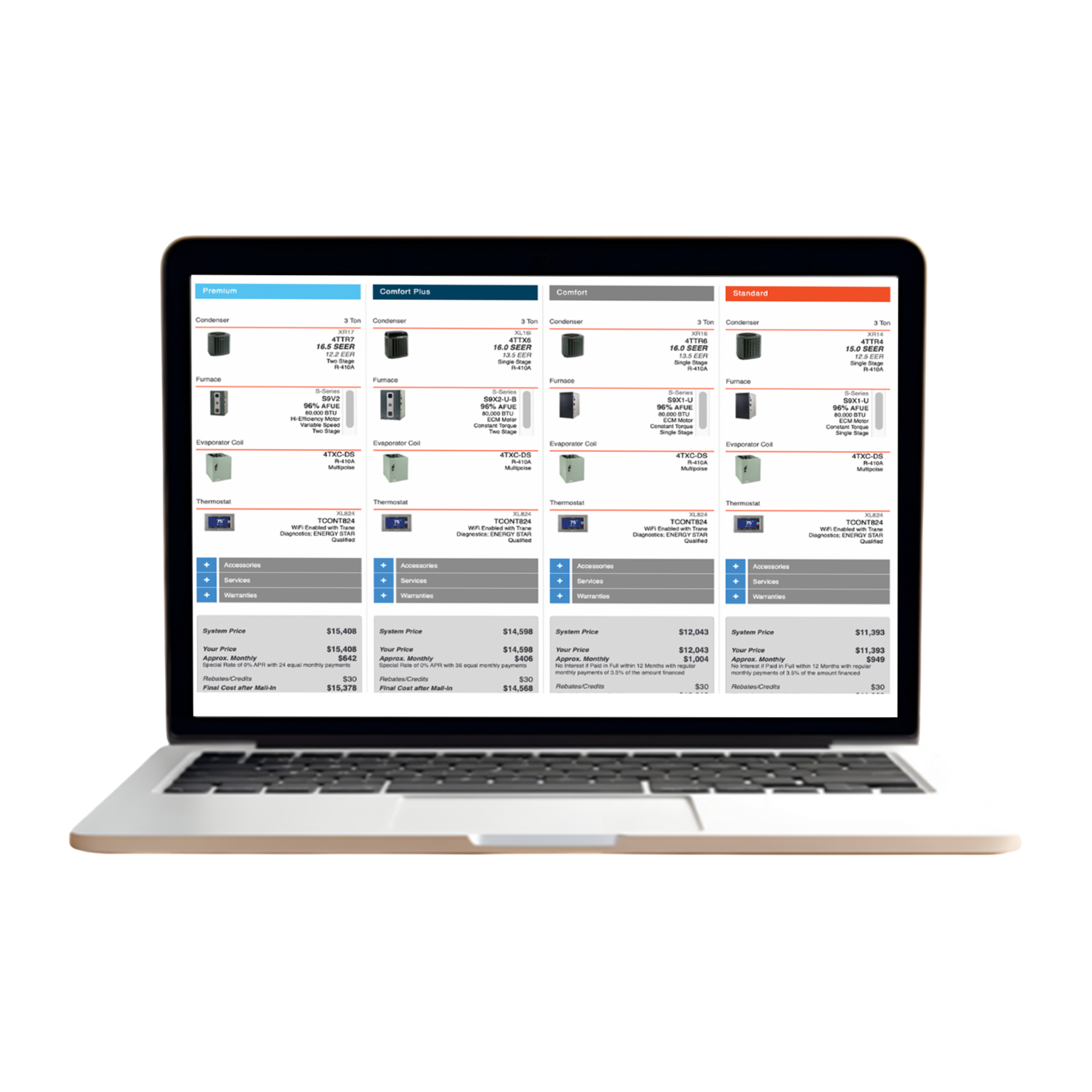 The ShowSite™ makes it easy for homeowners to compare Best / Better / Good options, understand monthly payments, and confidently choose upgrades - often moving to higher-efficiency systems. With better pricing control and a clearer path to premium options, many dealers report a measurable lift in average ticket, with some seeing increases of $1,500+ per sale.